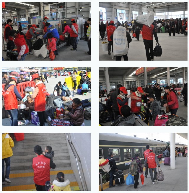 今年已是集團第三年組織參加春運服務(wù)。雖然是周末休息日,但我們的志愿者一早就到達服務(wù)區(qū)域:有的協(xié)助搭建志愿者暖洋洋服務(wù)站并駐點服務(wù),有的負(fù)責(zé)整個廣場及候車廳外圍的引導(dǎo)和搬運,有的負(fù)責(zé)協(xié)助候車廳安檢及廳內(nèi)服務(wù),還有的幫助那些攜幼提重的旅客順利登車。