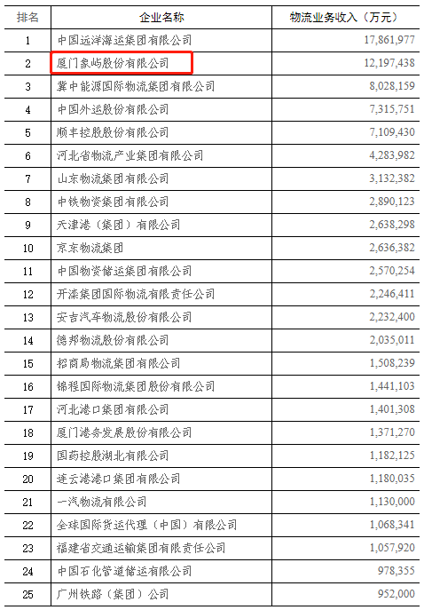 象嶼股份躍居2018中國(guó)物流企業(yè)50強(qiáng)第2位!