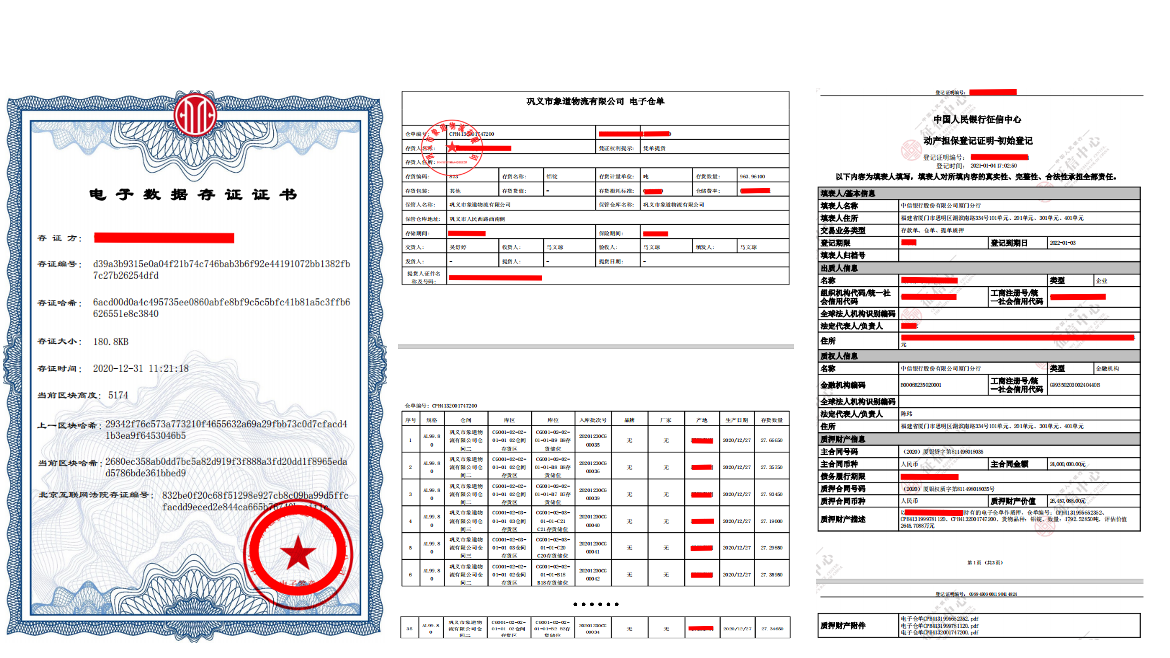 ▲ 區(qū)塊鏈存證、電子倉(cāng)單及中登網(wǎng)質(zhì)押登記
