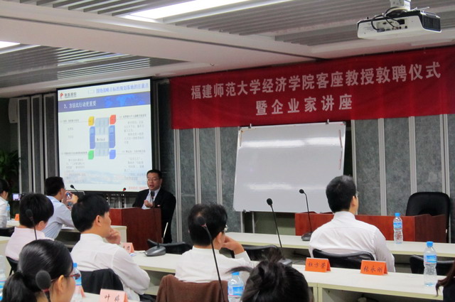 9月24日,象嶼股份總經(jīng)理鄧啟東應(yīng)邀來到福建師范大學(xué)倉山校區(qū)參加“福建師范大學(xué)經(jīng)濟(jì)學(xué)院客座教授敦聘儀式暨企業(yè)家講座”活動(dòng)。敦聘儀式上,福建師范大學(xué)MBA教育中心常務(wù)副主任章竟代表福師大致歡迎辭,經(jīng)濟(jì)學(xué)院李建建院長(zhǎng)為鄧啟東總經(jīng)理佩戴?;詹㈩C發(fā)了聘書。
